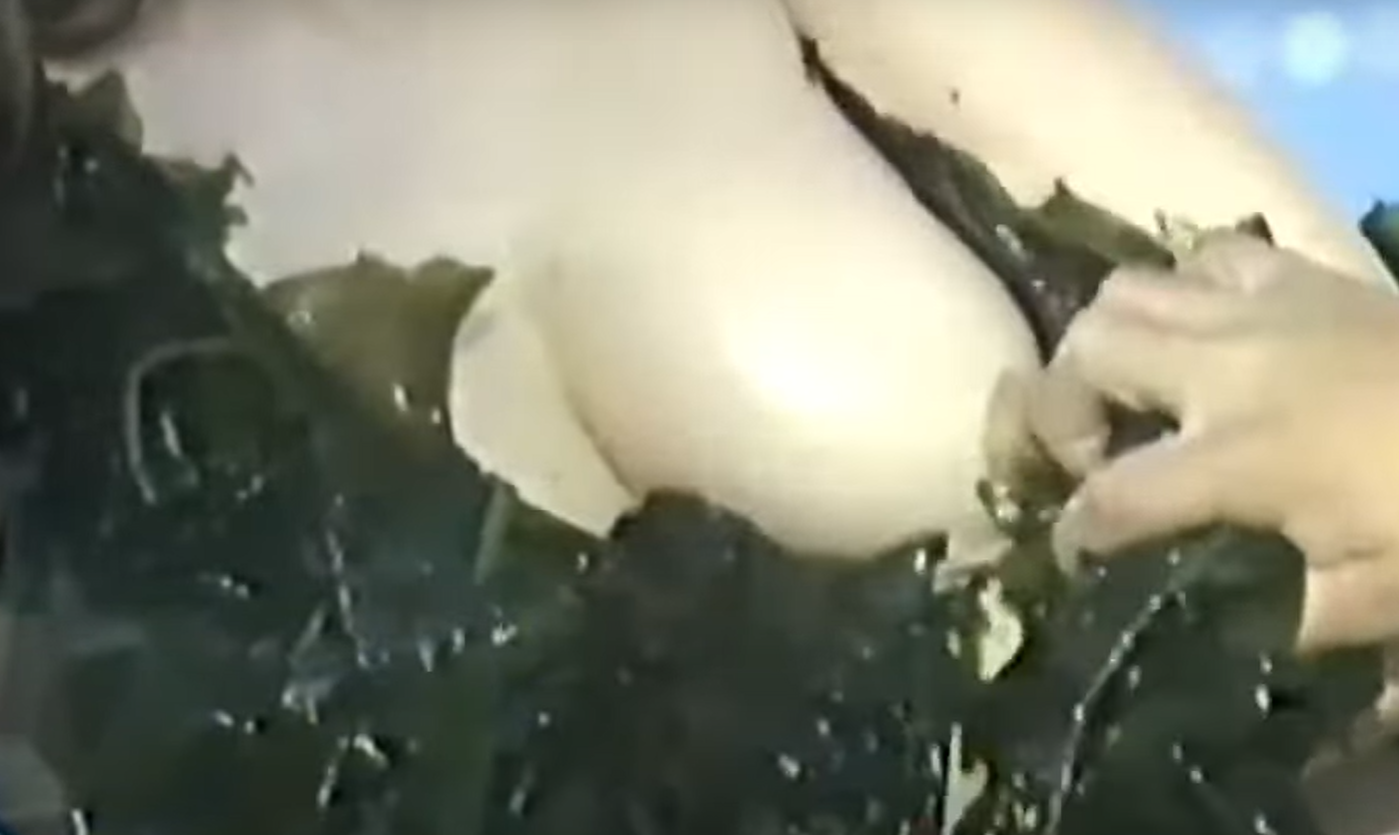 おっぱいのところがワカメで隠れてて、手がカットインしてきてそのワカメを取ってしまうと乳首が現れて