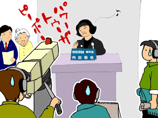 1991年 東京都知事選政見放送 暫しの沈黙のあと突然「Power To The People~♪Power To The People~♪」と英語でロックを歌いきった。最後にLadys and Gentleman, My name is Yuya UCHIDA.I was born in a Kobe,1999. ←1939のいい間違いか?The time was...