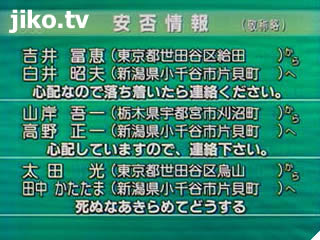 新潟中越地震 NHKの安否情報でイタズラが多発。太田光さんから田中片玉さんへ、西村博之から田代正、金正日、アニメ銀魂のキャラクターまで