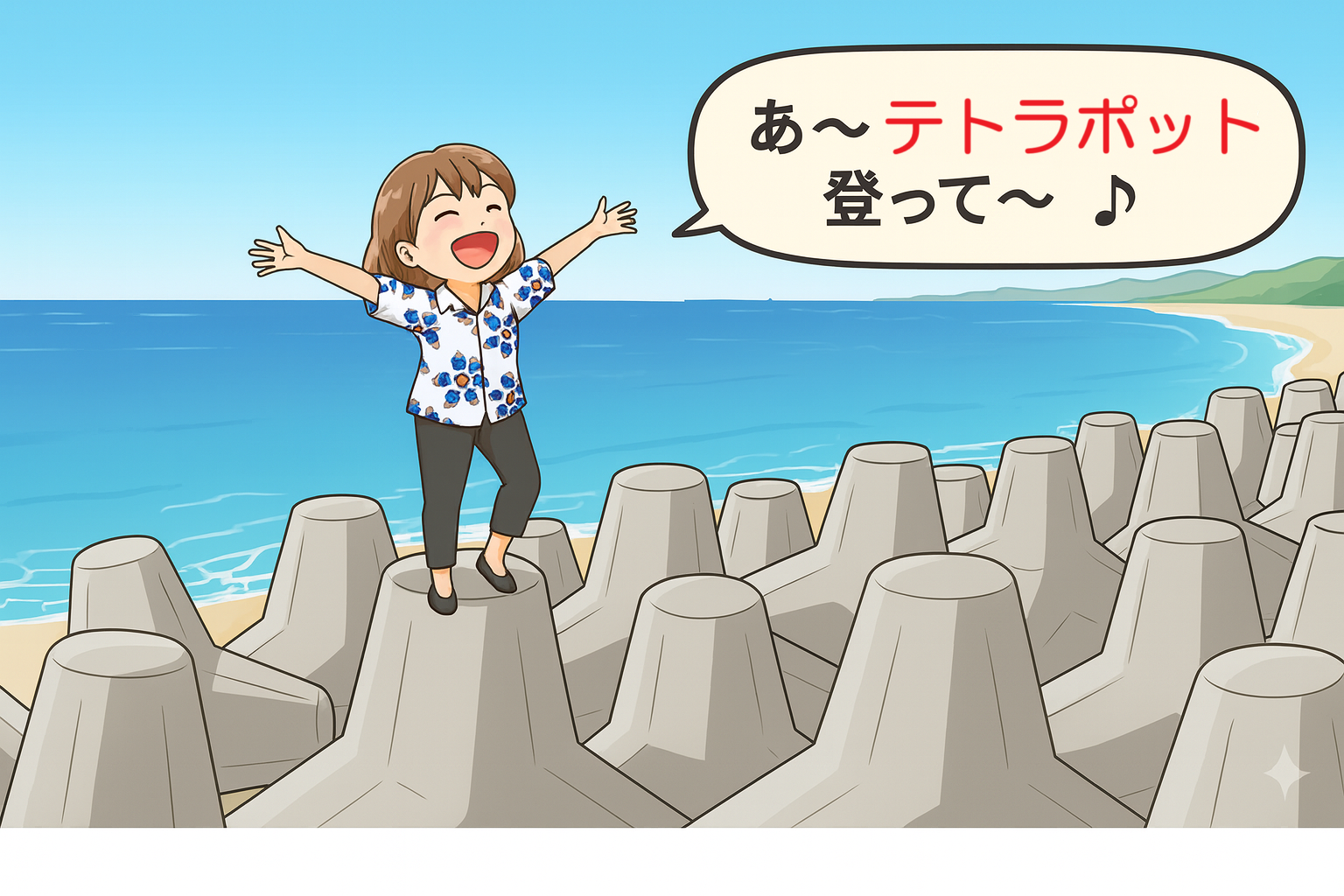 NHK局内では、消波ブロックの商標名「テトラポッド」に該当し、特定商品の宣伝に当たるのではないかという問題も浮上したそうだが、彼女が歌詞として書いた言葉は「テトラポット」。最後の文字は正しくは「ド」なのだが、彼女はそれを勘違いしたようで、「ト」と濁点をつけないまま歌詞にしていたという。