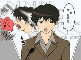 (2001.12.1)「太陽にほえろ!2001」のOA中に雅子様出産のニュースが入りカットイン。速報体制で報道センターは相当ガヤガヤしている。豊田順子アナは、すでにカメラがスタジオに切り替わったことを知らず、「原稿が無いの」と絶叫。すがい剣幕でし... -