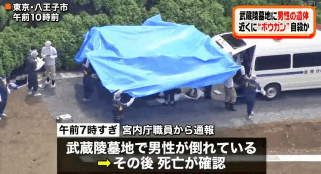 午前7時20分ごろ、武蔵陵墓地で30代~50代の男性の遺体が見つかった。高尾署によると、男性の上半身には矢が刺さっており、周辺でボーガンのような物が見つかったため自殺ではないかとみられていた。日本テレビもヘリコプターから現場となった武蔵陵墓地の...