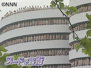 ヌードの芸術を極めるアメリカの写真家による作品の撮影で、 全員が裸でずらりと並び、腕を交差するなどのポーズをとった。
