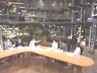 ニュースステーション | 久米宏が小宮悦子にちょっかい出して、小宮のブラが透けて丸見え。