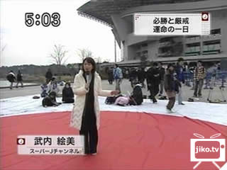 武内絵美アナが日本国旗を踏みつけ、このあと謝罪した。(2005.2.9)