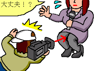 アナがずっこけ、パンツ丸見えに! レポート中にカメラマンが石につまづいて転倒。麻美由利江アナが「大丈夫?」としゃがみながら助けに行った。ところがカメラがまわっていたので、 麻美アナのパンツがしっかりと映っていた。 レポート中にカメラマンが石... -