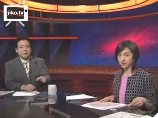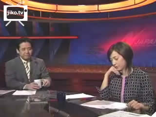 松本方哉キャスターがコーヒーを飲んおり、滝川クリステルキャスターはほおづえをついていて大慌て。