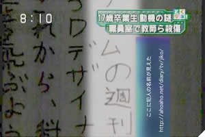 大阪府寝屋川市の小学校で教師が卒業生の少年に刺殺された事件で、フジテレビが15日朝の番組で、逮捕された少年(17)を実名で画面に映した。同社によると、実名が流れたのは情報番組「とくダネ!」。小学校時代の卒業文集を画面に映した際、少年の実名を十分に隠さず、実名が分かる画面が数秒間、放映されたという。