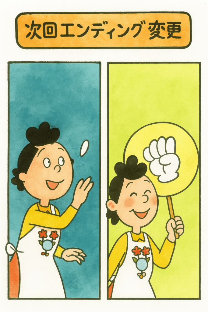 サザエさん | 子供が真似ないように「んが、くく」から「じゃんけん」に変更(生成画像)