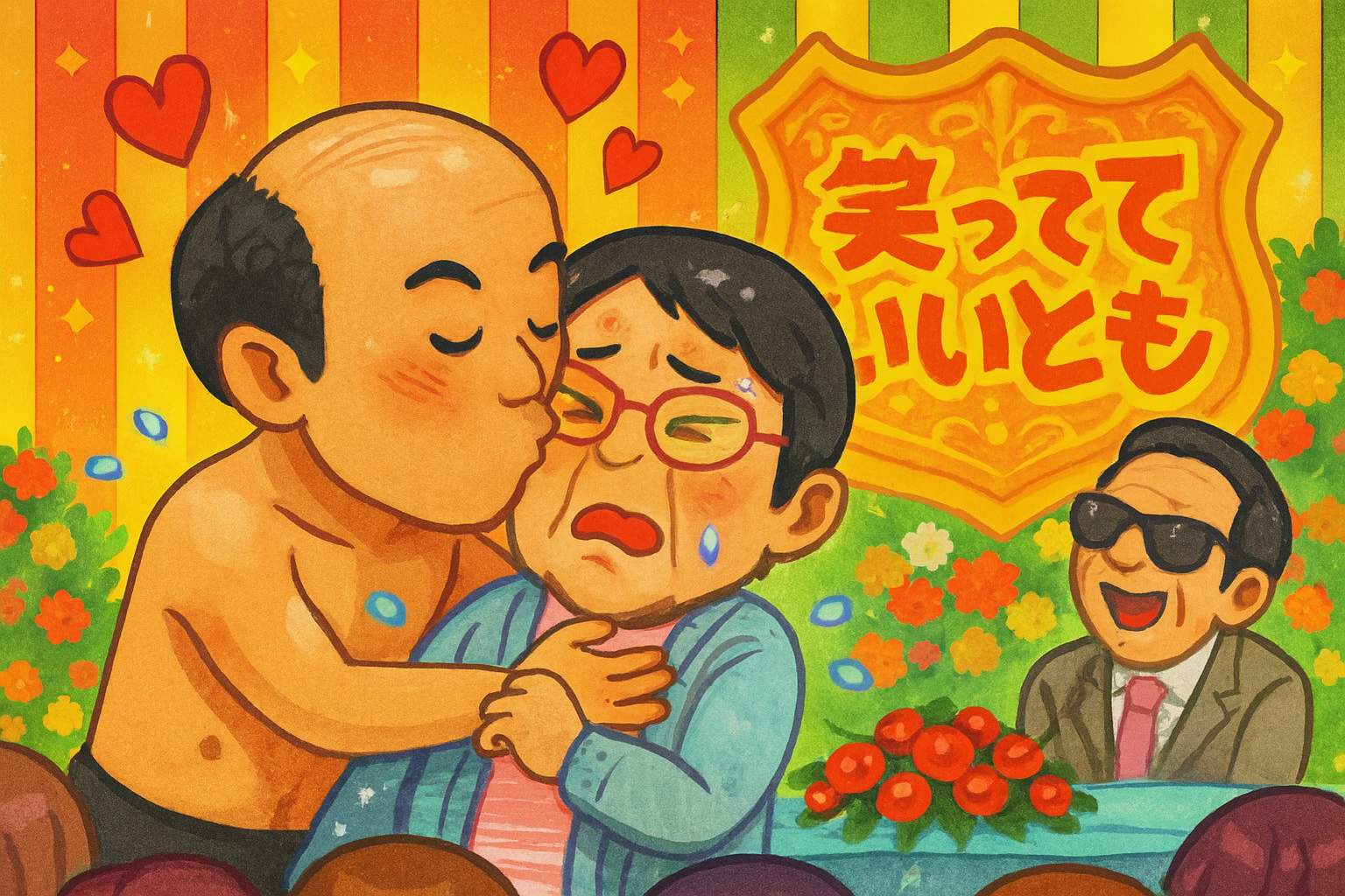 と言いながら江頭がいきなり橋田壽賀子にキスをした。